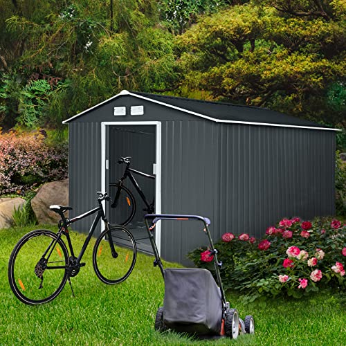 HATTORO S300 Metall Gerätehaus XXXL 277x319x192cm Geräteschuppen Garten Schuppen Gartenhaus Satteldach Anthrazit