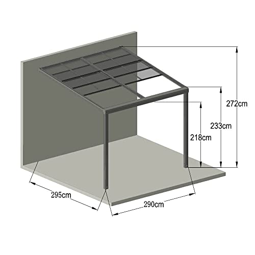 - ✅ 𝐕𝐀𝐑𝐈𝐀𝐍𝐓𝐄𝐍: Entdecken Sie dieses Terrassendach in verschiedenen Größen, von 290 x 295 bis 579 x 233 cm. Ideal als Unterstand, Pergola oder Pavillon.