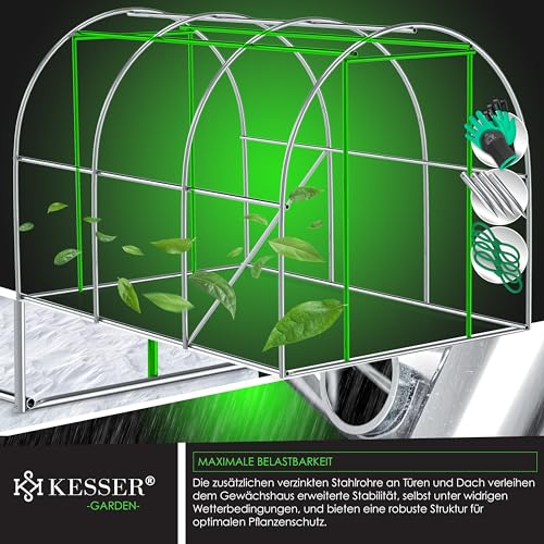 KESSER® Folien-Gewächshaus Stabil mit 6 Fenster mit Moskitonetz & Tür | Gartentunnel mit Rahmen aus verzinktem Stahl | Folientunnel 170g/m² inkl. Erdanker Handschuhen & Seilen |…