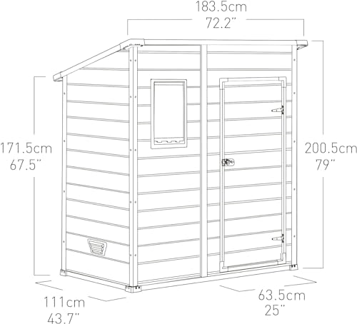 - RAUMWUNDER: Rauminhalt ca. 3,2 m³, geringe Abmessungen(außen: BxTxH:183.5 x 111 x 200.5 cm), konzipiert, um auf die Fläche zwischen Ihrem Grundstück und dem Zaun zu passen
